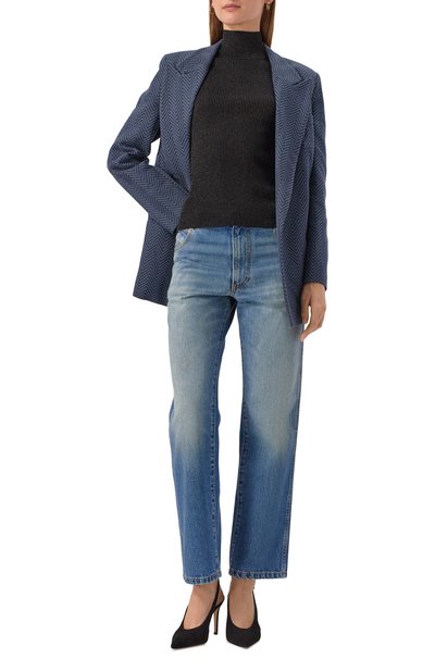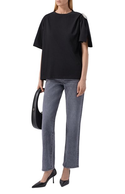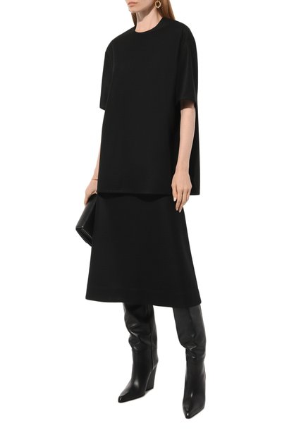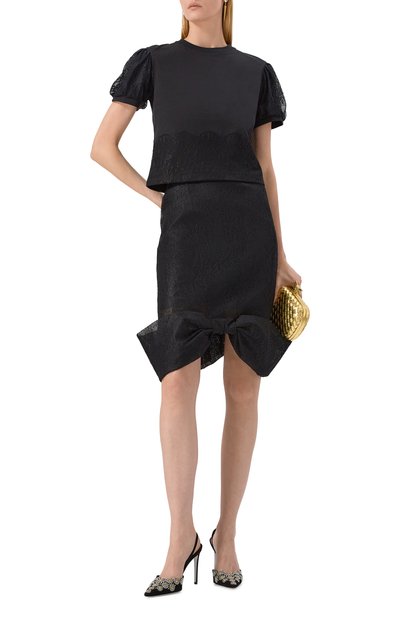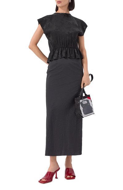 Топ Spallina с высоким драпированным воротником и акцентными плечами выполнили из вискозного трикотажа с добавлением шелка. Модель с вышитой эмблемой сбоку застегивается потайной молнией сзади.