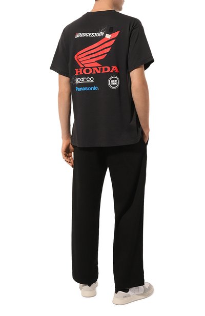 Oversize-футболку из хлопкового джерси декорировали принтом Equilibre de Juun.J. Спинку дополнили геометричной вставкой, вышив под ней небольшой логотип в тон.