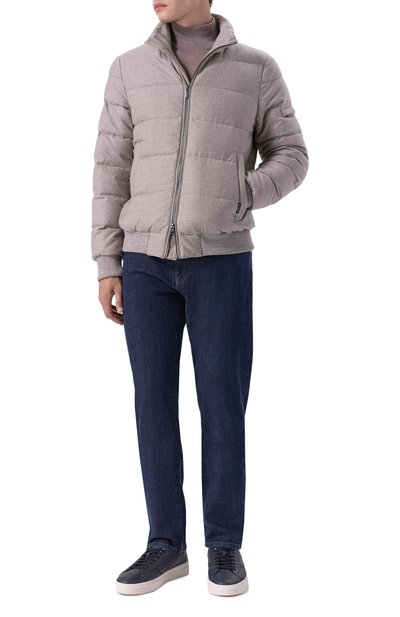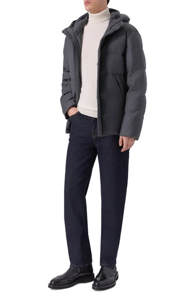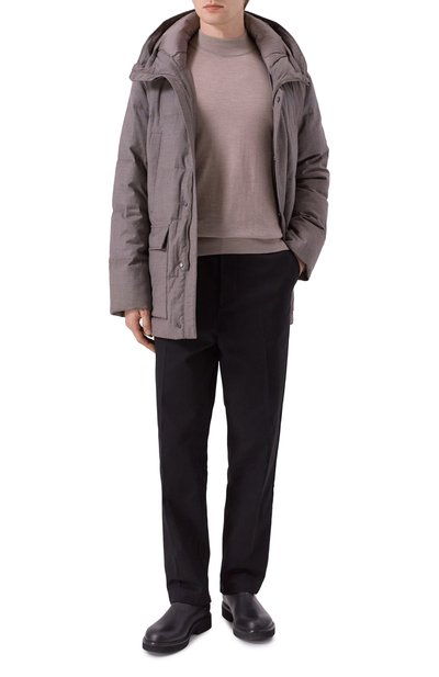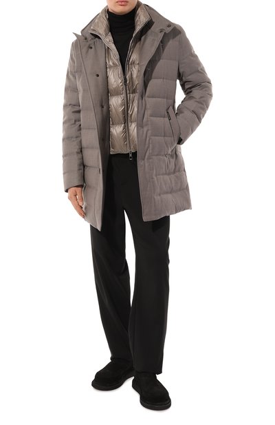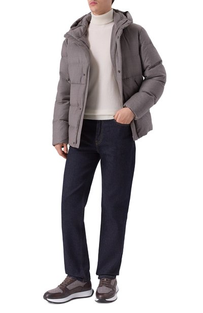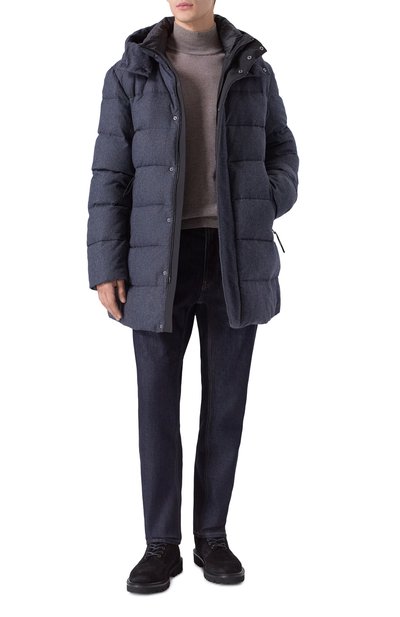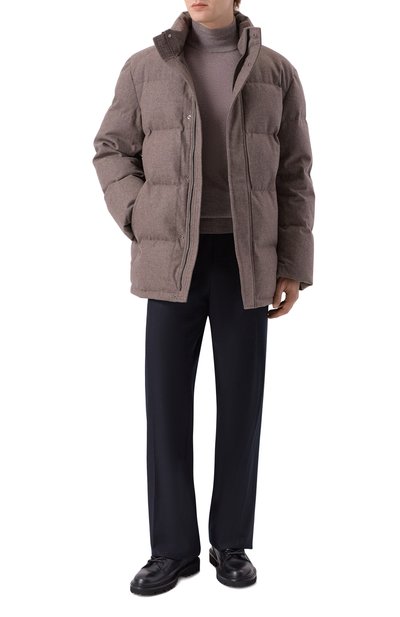 Стеганый пуховик Paw на утином пуху выполнили из шерстяной ткани. Куртка со съемным капюшоном и двумя карманами застегивается молнией, скрытой штормовой планкой с кнопками.