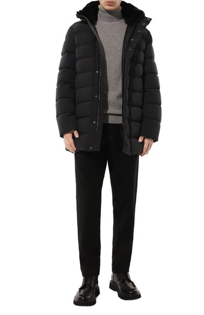 Стеганую куртку William на утином пуху выполнили из влагостойкого стрейчевого нейлона. Модель со съемными регулируемым капюшоном и отделкой из меха кролика на воротнике-стойке дополнили боковыми карманами и парой внутренних.