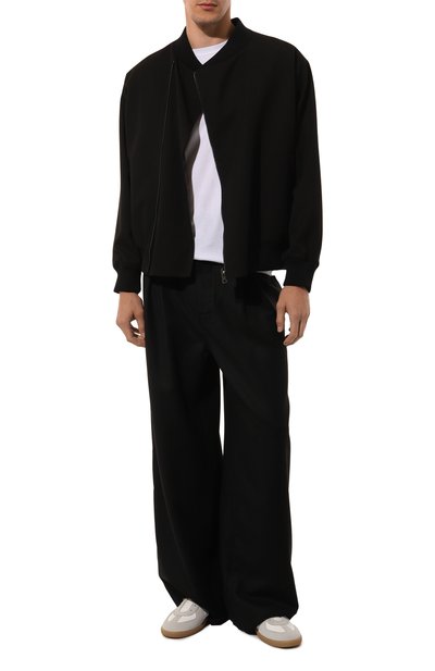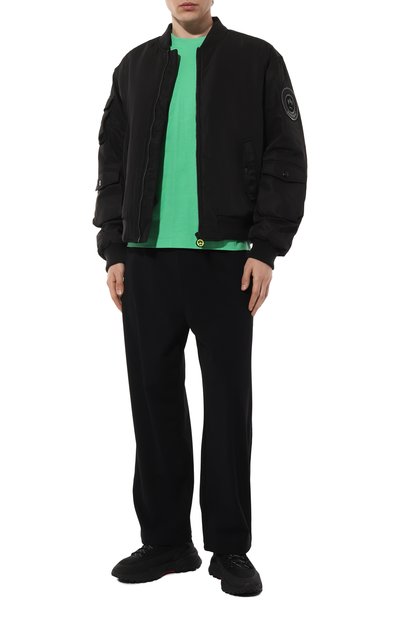 Утепленный бомбер с двумя боковыми карманами и еще парой с брендированным патчем на рукаве выполнили из нейлона. Куртка с вышитым на спинке логотипом застегивается встречной молнией.