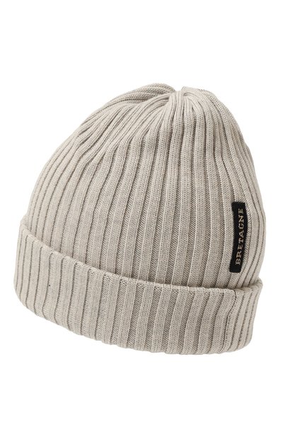 Шапку бини связали резинкой 2x2 из акриловой пряжи. Широкий отворот аксессуара украсили брендированной вышивкой.