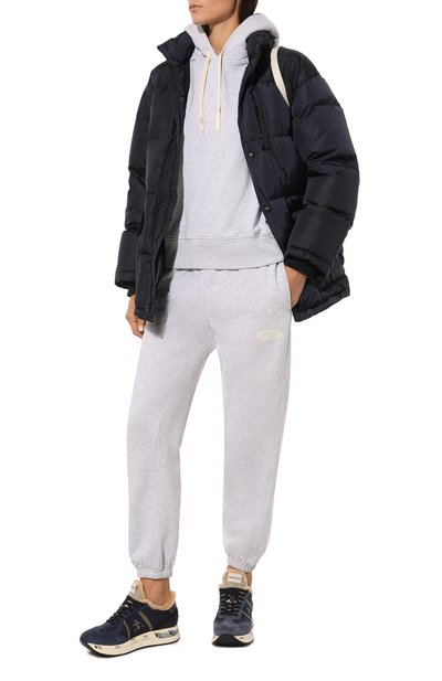 Oversize-худи со спущенной линией плеч и карманом «кенгуру» выполнили из хлопковой фельпы. Капюшон модели украсили контрастным вышитым логотипом.