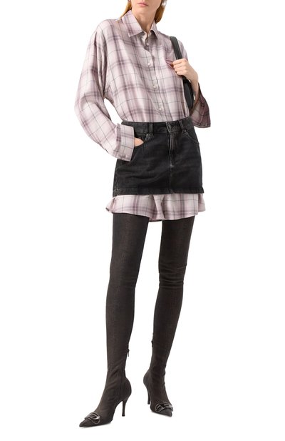 Короткую расклешенную юбку с клиньями выполнили из хлопкового футера с добавлением полиэстера. Спереди модель с необработанными краями и эластичным поясом украсили рельефным логотипом марки в тон.