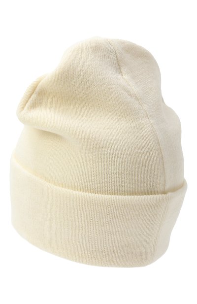 Для изготовления шапки бини использовали трикотаж из смеси шерсти и акрила. Широкий отворот украсили контрастным вышитым логотипом бренда.