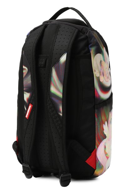 Рюкзак выполнили из полиэстера 900D, украсив принтом Smurfs Art Party. У модели предусмотрели внутренние отделение для ноутбука и два сетчатых органайзера, а также три внешних кармана, отделение для очков и карман-крепление для телескопической ручки чемодана.