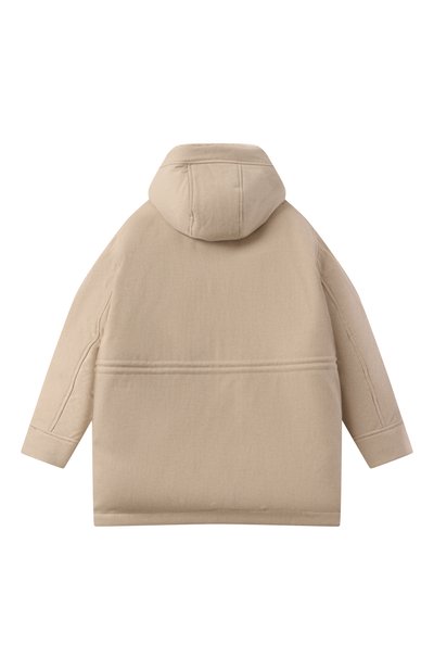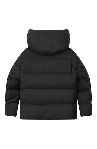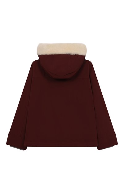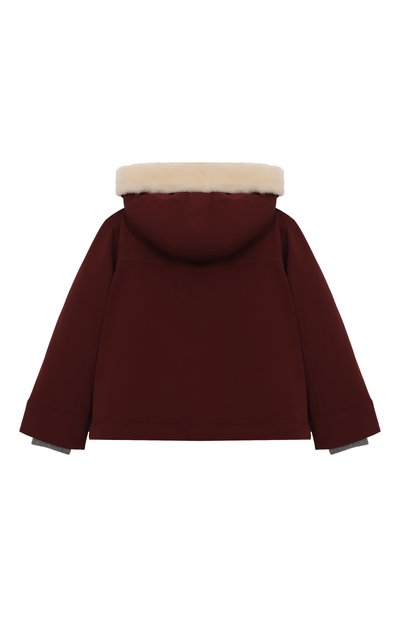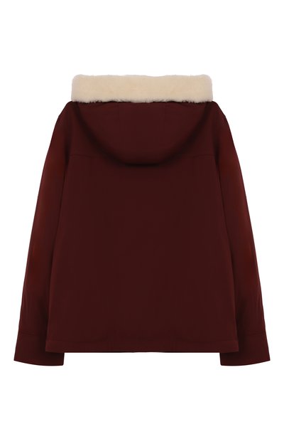 Утепленную гусиным пухом парку с накладными карманами, трикотажными манжетами и кулиской по краю выполнили из эластичного матового нейлона. Модель с отделкой на капюшоне и съемным подкладом, выполненными из овчины, застегивается молнией под штормовой планкой.