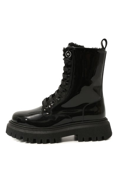 Челси на широкой протекторной подошве выполнили из замши, а для внутренней отделки модели использовали овчину. Модель с декоративной пряжкой в виде фирменной монограммы DG застегивается боковой молнией с ремешком-фиксатором.