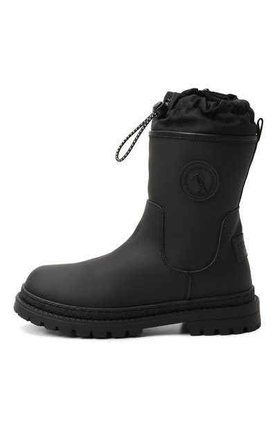 Сапоги из поливинилхлорида дополнили текстильной внутренней отделкой. Широкое голенище декорировали ремешком и патчем с монограммой DG.
