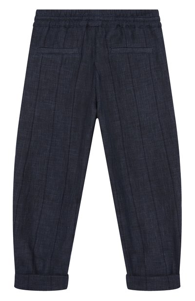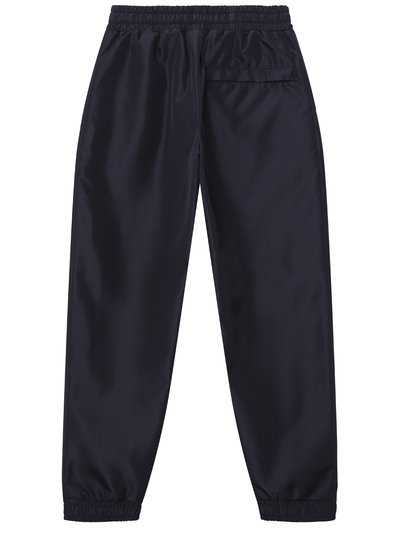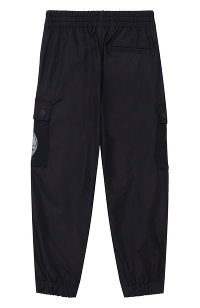 Джоггеры с эластичным поясом и хлопковым подкладом украсили фирменной эмблемой на одном из двух трикотажных карго с клапанами. Модель с двумя боковыми и задним прорезным карманами выполнили из полиэстера.