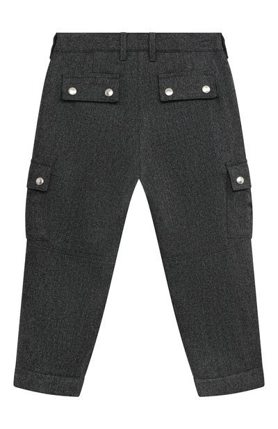 Брюки с шевронным мотивом выполнили из шерсти с добавлением нейлона, украсив изделие фирменной монограммой DG. Модель с отворотами и четырьмя карманами дополнили поясом-кулиской.