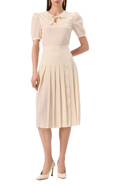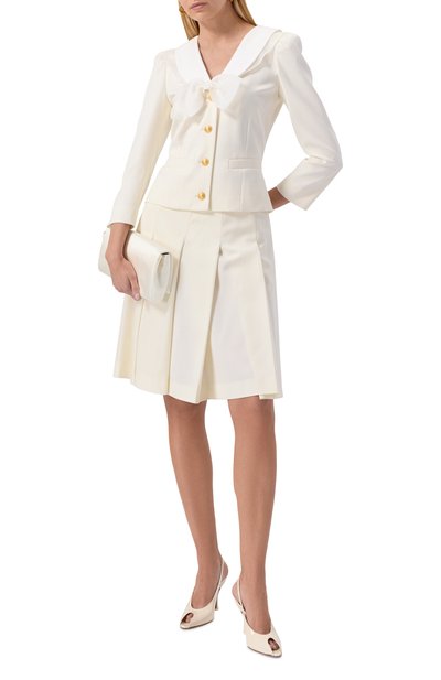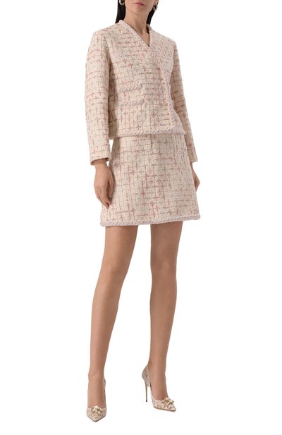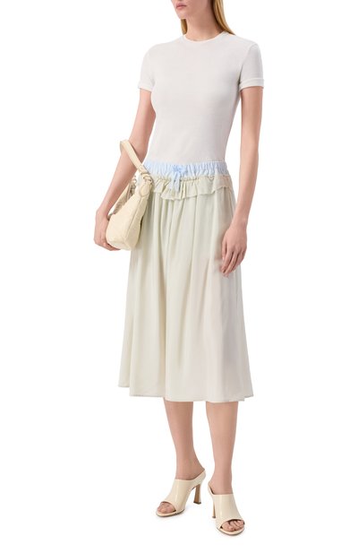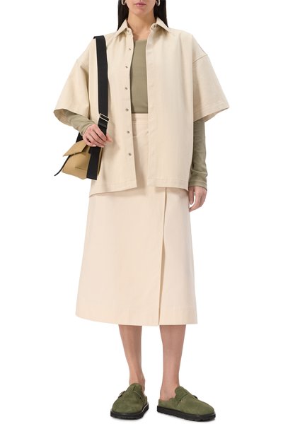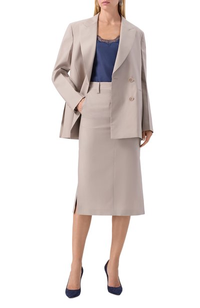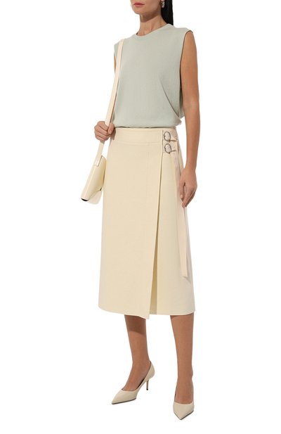 Миди-юбка из шерсти в фактурную клетку составит гармоничный дуэт с парной блузой. Модель с нахлестом на боковых швах дополнили четырьмя карманами, а спереди и сзади предусмотрели шлицы.