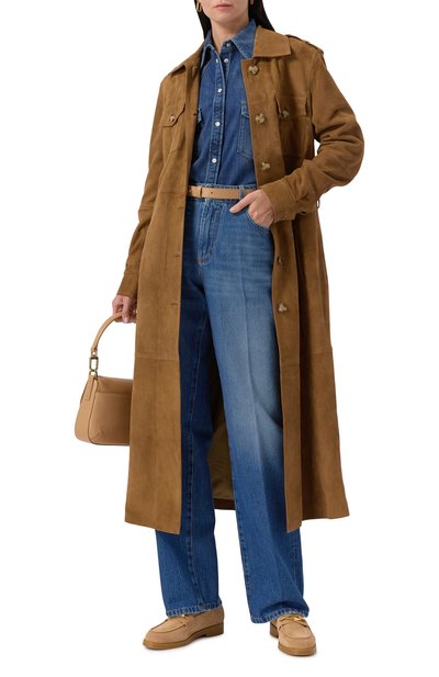 Пенни-лоферы Chloe выполнили из телячьей кожи, сертифицированной по стандарту LWG. Перемычку с характерной прорезью декорировали цепочкой с логотипом, а вокруг шва на мысе сформировали складки.