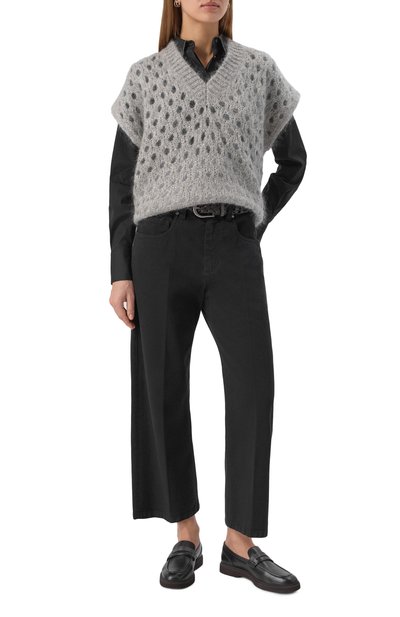 Лоферы Ellis с драпированным мысом выполнили из мягкой кожи. Пару на низком наборном каблуке украсили эмблемой JC в тон на перемычке.
