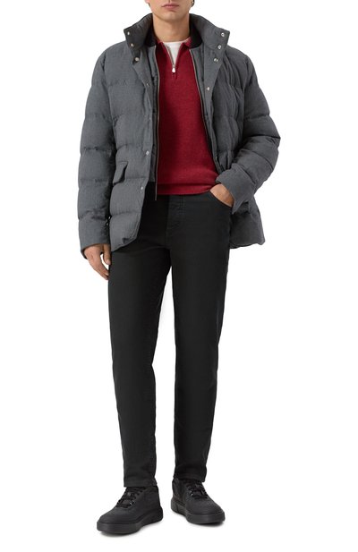 Oversize-куртку из линии Jil Sander+ выполнили из валяного текстиля double face на основе шерсти первого пострига. По бокам предусмотрели карманы, а на капюшоне и снизу – кулиски с контрастным шнуром. Модель с фирменной монограммой на левом рукаве застегивается встречной молнией.