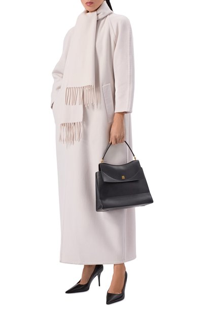Для создания пальто с широкими лацканами выбрали чистую шерсть, а для подклада использовали стрейчевый атлас из вискозы. Сзади предусмотрели высокую шлицу, а по бокам – карманы. Модель на потайной застежке дополнили ремнем с квадратной пряжкой.