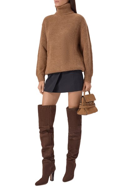 Ботфорты Piper с зауженным мысом и невысоким блочным каблуком сшили из тонко выделанной замши и отделали внутри мягкой кожей. Пару без застежки удобно надевать благодаря широкому голенищу с вырезом сзади.