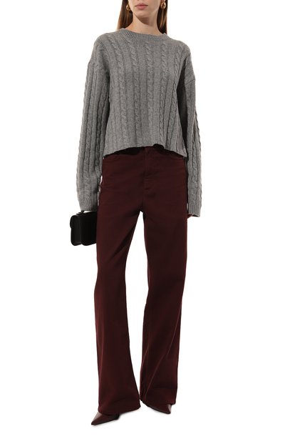 Свитер с арановым узором связали из кашемировой пряжи с добавлением шелка. Модель с рукавами реглан и высоким воротом в рубчик может стать основой комфортного повседневного образа.