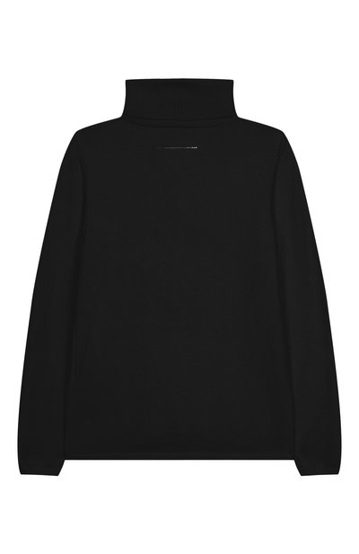 Водолазку выполнили из эластичного вискозного трикотажа в рубчик. Манжеты и высокий ворот отделали кружевом в тон. Спереди модель украсили контрастным логотипом марки.