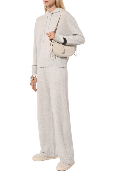 Oversize-худи Liana с манжетами и поясом в рубчик связали из шерстя ной пряжи с добавлением кашемира. Модель с брендированными эглетами на шнуре, продетом в кулиску капюшона, дополнили нагрудным карманом.