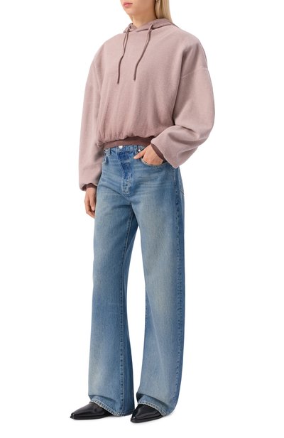 Oversize-худи Liana с манжетами и поясом в рубчик связали из шерстяной пряжи с добавлением кашемира. Модель с брендированными эглетами на шнуре, продетом в кулиску капюшона, дополнили нагрудным карманом.