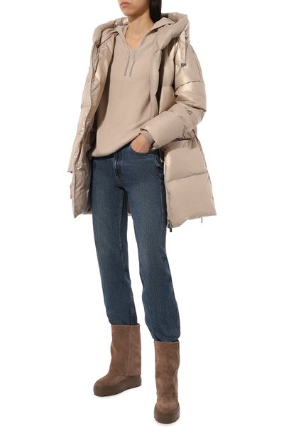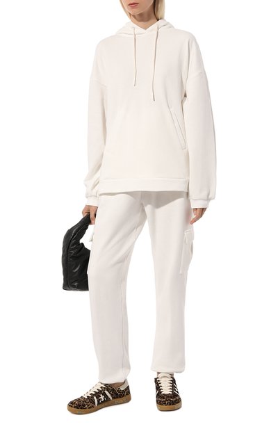 Oversize-худи Liana с манжетами и поясом в рубчик связали из шерстя ной пряжи с добавлением кашемира. Модель с брендированными эглетами на шнуре, продетом в кулиску капюшона, дополнили нагрудным карманом.