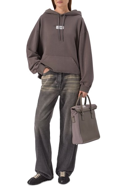 Oversize-худи Liana с манжетами и поясом в рубчик связали из шерстяной пряжи с добавлением кашемира. Модель с брендированными эглетами на шнуре, продетом в кулиску капюшона, дополнили нагрудным карманом.