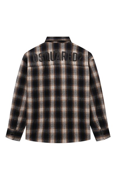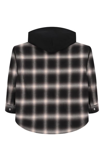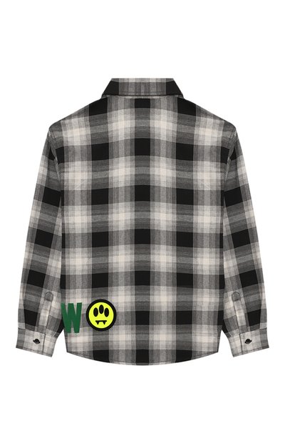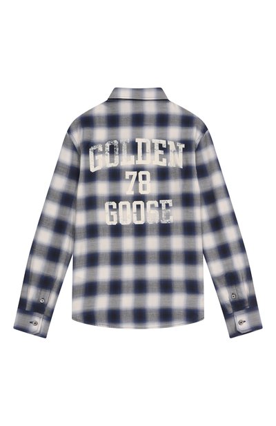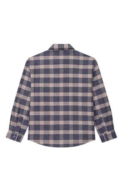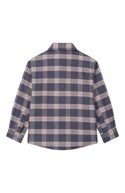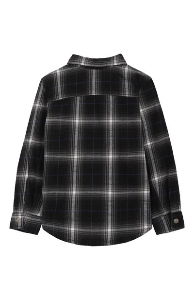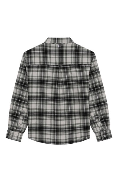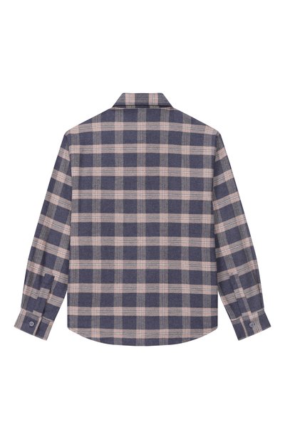 Рубашку с воротником button down сшили из хлопковой фланели в крупную клетку. Модель дополнили накладным нагрудным карманом, разместив над ним небольшой логотип.