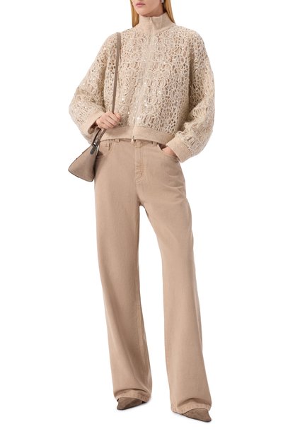 Кардиган Balloon Net Embroidery, украшенный п айетками, изготовили из сетчатого материала на основе шерсти, кашемира и мохера. Oversize-модель с капюшоном и отделкой в рубчик застегивается встречной молнией.