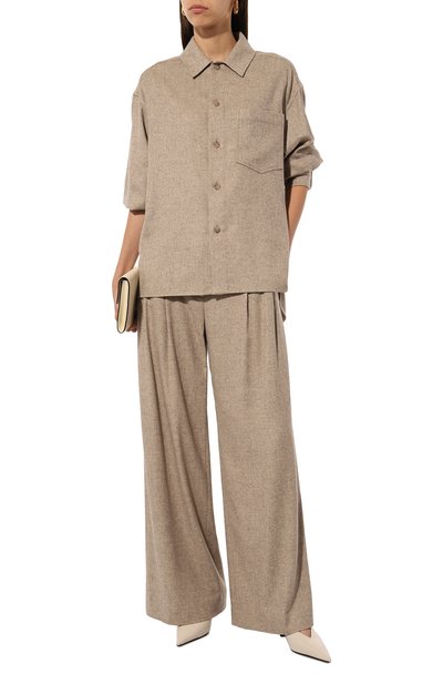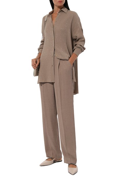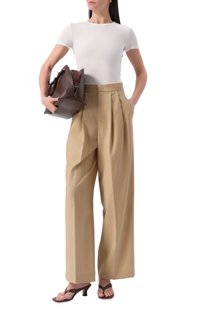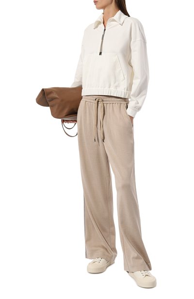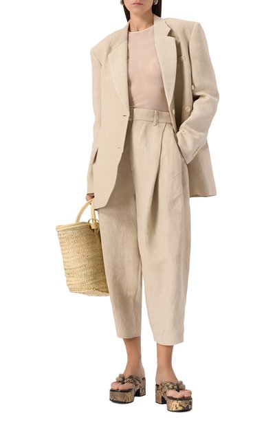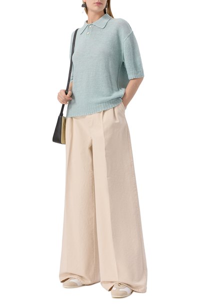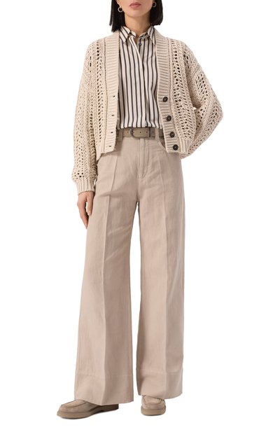 Брюки Barrel с двойными складками сшили из эластичного хлопкового молескина с бархатистой фактурой. Модель с пятью карманами украсили фирменными цепочками мониль на шлевке сзади.