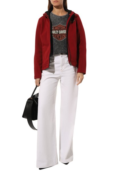 Oversize-толстовку с драпировкой выполнили из хлопкового джерси. Модель с воротником-стойкой и двумя боковыми карманами застегивается встречной молнией.