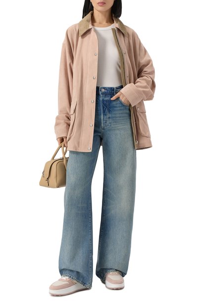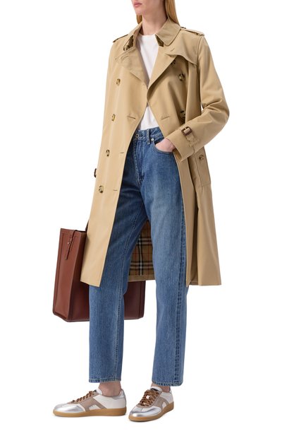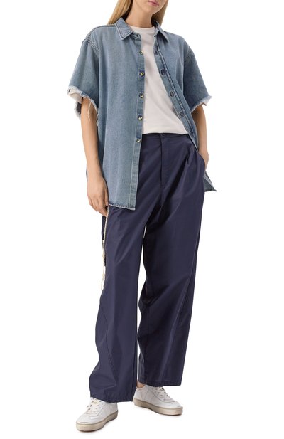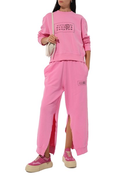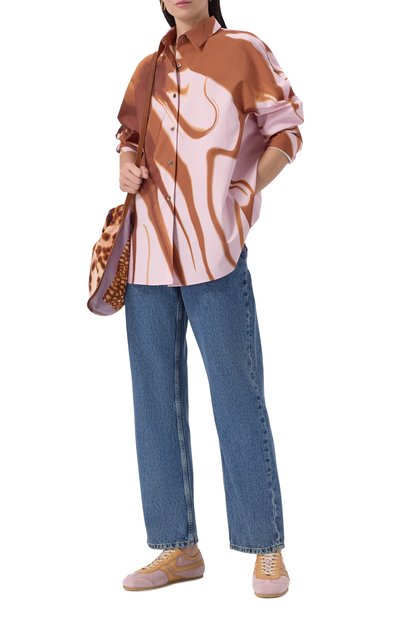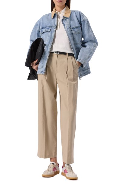 Кеды, вдохновленные футбольными бутсами, выполнили в технике color block из гладкой овечьей наппы и телячьей замши. Модель на тонкой шипованной подошве декорировали вышитым логотипом сбоку.
