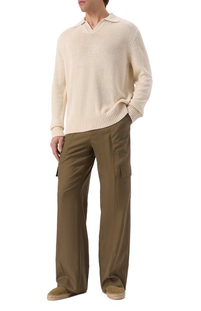 Oversize-поло с рельефными швами выполнили из хлопкового трикотажа. Модель с рифлеными манжетами и поясом застегивается перламутровой пуговицей в тон.
