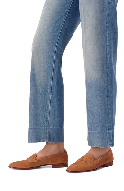Лоферы Dylan с внутренней отделкой из стриженой овчины выполнили из мягкой замши. Пару с рельефными швами на заднике, перемычке и вдоль мыса установили на тонкую подошву с наборным каблуком.