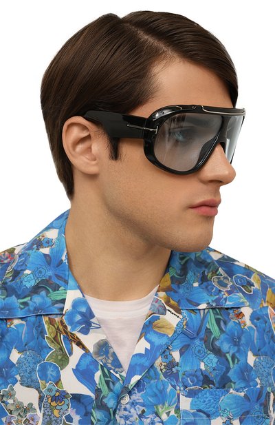 Массивную оправу солнцезащитных очков Carmen изготовили из пятнистого ацетата. Широкие дужки украсили брендированными вставками и T-образными элементами. Аксессуар дополнили линзами со 100% УФ-фильтром.