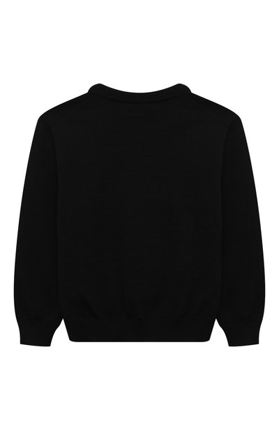 Пуловер с ребристыми манжетами, поясом и горловиной изготовлен из шерстяного трикотажа с добавлением полиамида. Спереди модель украшена вышитым логотипом марки и интарсионным мотивом с фирменным медвежонком Teddy Bear.