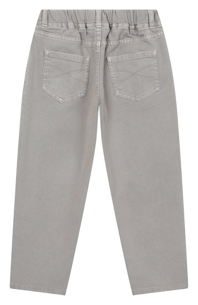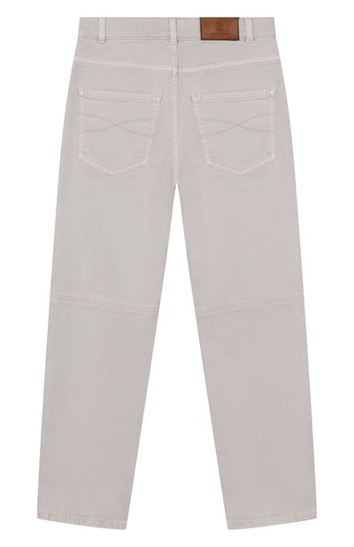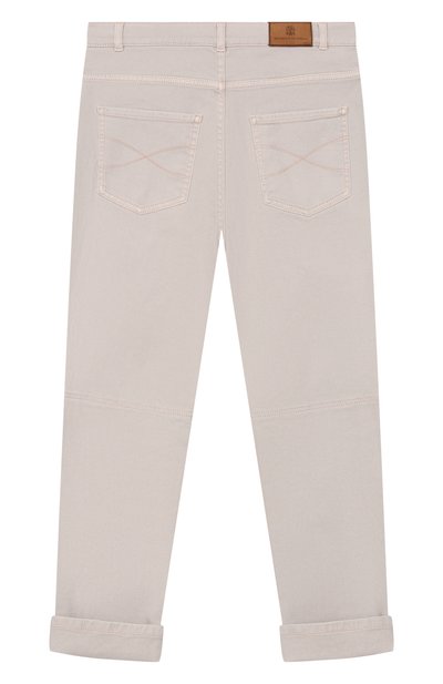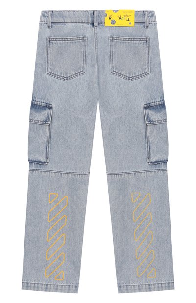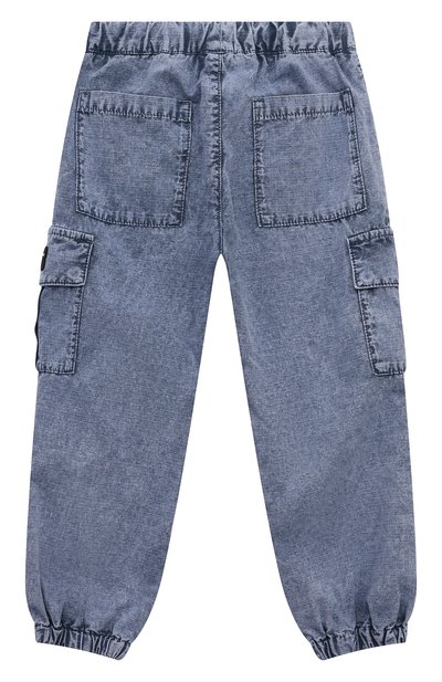 Джинсы с вышитым логотипом марки выполнили из хлопкового денима с декоративными потертостями. Помимо боковых и задних карманов предусмотрели пару карго.
