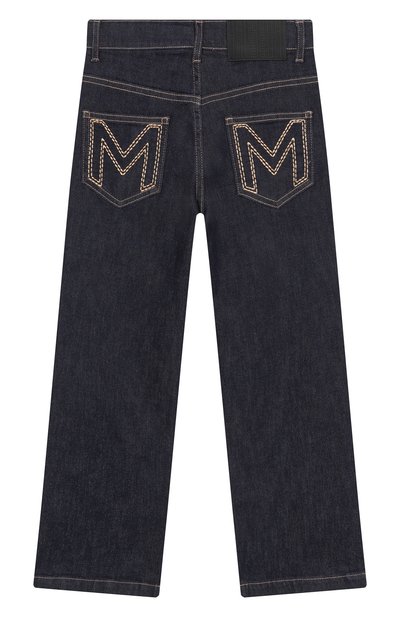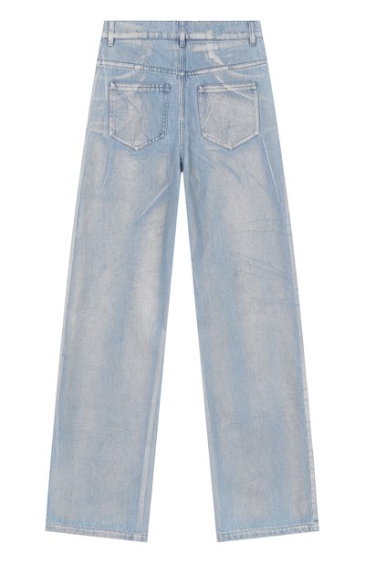 Джинсы с пятью карманами сшили из хлопкового денима с декоративными потертостями. Спереди модель украсили контрастными вставками-заплатками.