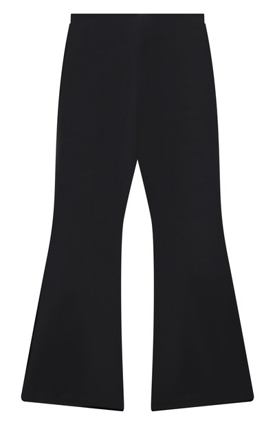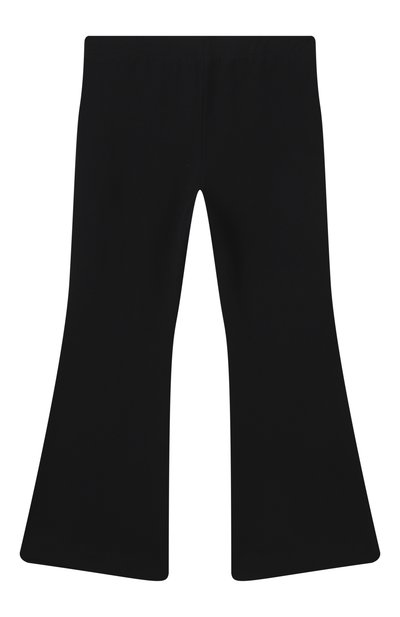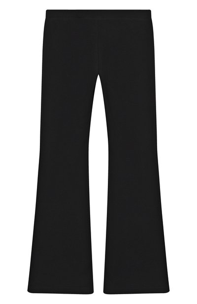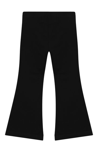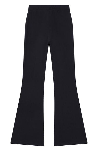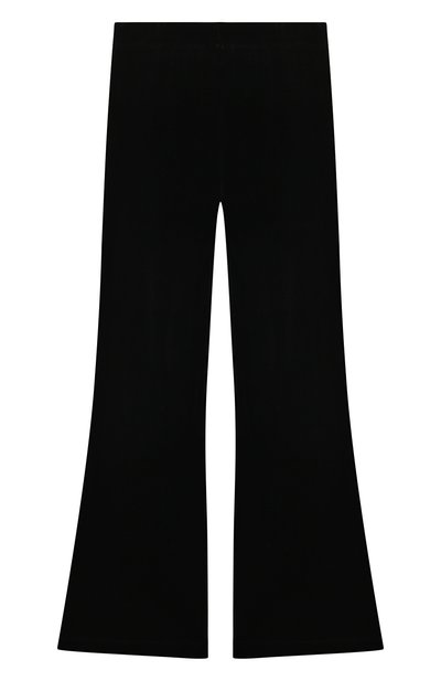 Расклешенные брюки из хлопкового трикотажа украсили изображением фирменного медвежонка Teddy Bear и логотипом. Благодаря эластичному широкому поясу модель обходится без застежки.