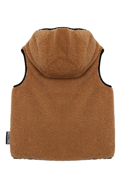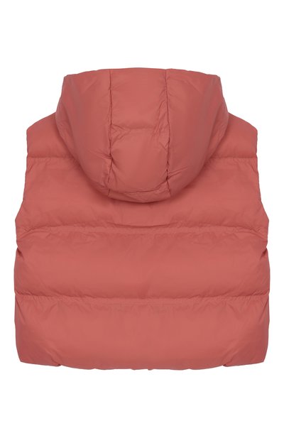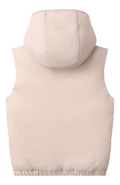 Стеганый жилет с воротником-стойкой, двумя врезными карманами и эластичным поясом сшили из матового полиамида. Утепленную модель на молнии украсили фирменным принтом спереди.
