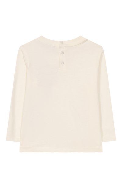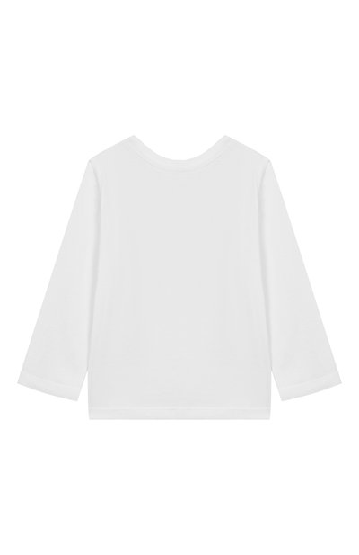 Лонгслив с круглой горловиной украсили изображениями олененка и фирменного медвежонка Teddy Bear. Для изготовления модели использовали хлопковое джерси.