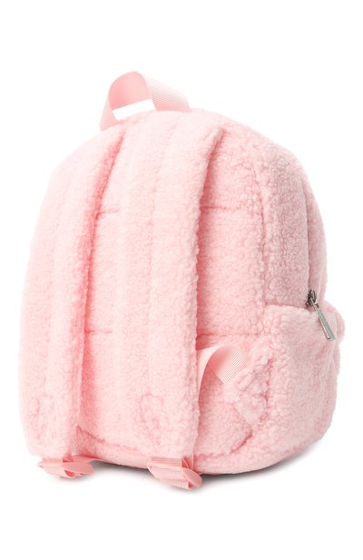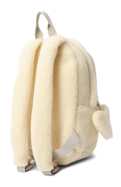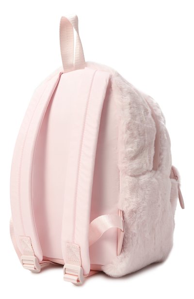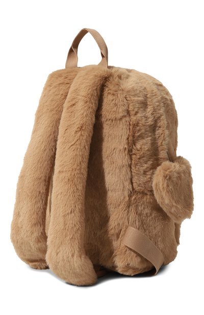 Рюкзак со стеганой спинкой выполнили из полиэстерового плюша. Сам аксессуар украсили брендированным патчем, а объемный внешний карман со вставками-ушками – вышивкой в виде мордочки фирменного медвежонка Teddy Bear.