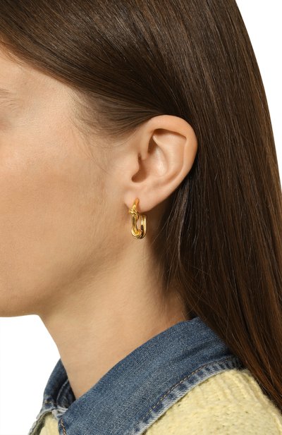 Серьги Torsade, напоминающие спираль, выполнили из латуни с покрытием 12-каратным желтым золотом. Аксессуар застегивается пусетой со штифтом из хирургической стали и фиксатором, декорированным прозрачным кристаллом.