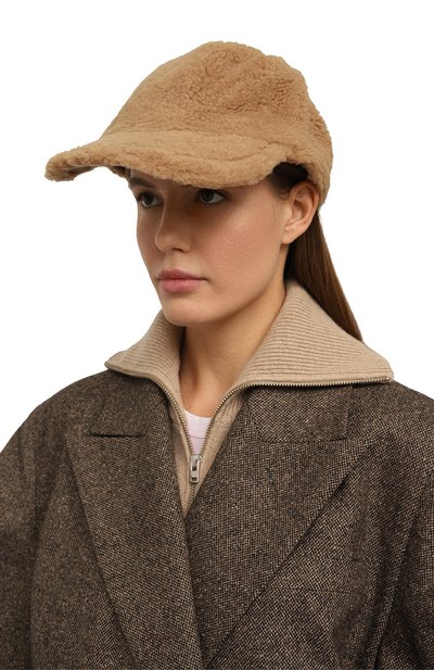 Бейсболку Lana с плоским козырьком выполнили из фактурной шерсти с добавлением полиамида. Тулью аксессуара украсили крупным логотипом марки спереди.