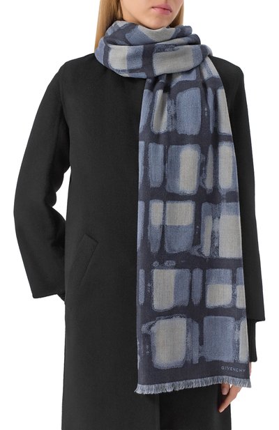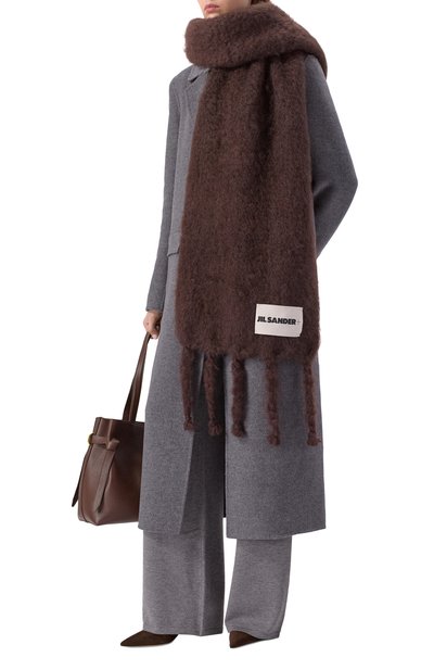 Шарф с фирменным узором Burberry Check украсили бахромой на концах. Для создания аксессуара использовали ворсованный микс мохера и шерсти.