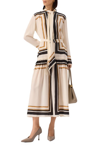 Платье Hypnotic с объемными рукавами реглан и фестончатой отделкой на высоких манжетах выполнили из льняной ткани. Приталенная модель с пуговицами из рафии и широким поясом с акцентной пряжкой застегивается потайной молнией сзади.
