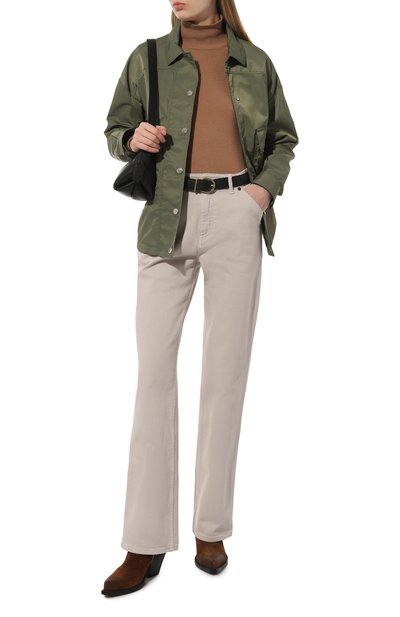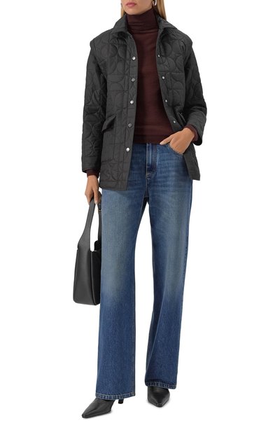 Куртку со стеганым геометрическим узором сшили из шелка с полиуретановым покрытием и утеплили высокотехнологичным наполнителем из переработанного шелка с добавлением полиэстера. Модель с фигурным низом и отстегивающимися рукавами дополнили накладными боковыми карманами с клапанами.