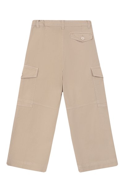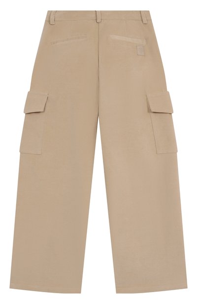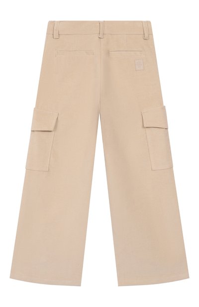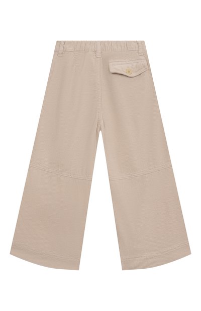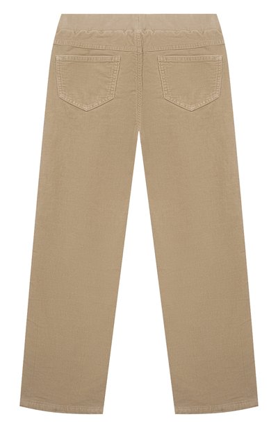 Брюки с защипами спереди выполнили из эластичного хлопкового вельвета с добавлением модала. Модель с регулируемой внутренней резинкой на поясе дополнили боковыми карманами и задним с клапаном на пуговице.