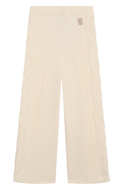 Для пошива широких брюк с защипами использовали стрейчевый вельвет на основе хлопка и модала. Под эластичным поясом со шлевками разместили небольшой брендированный ярлык. Помимо боковых карманов предусмотрели задний с клапаном на пуговице.