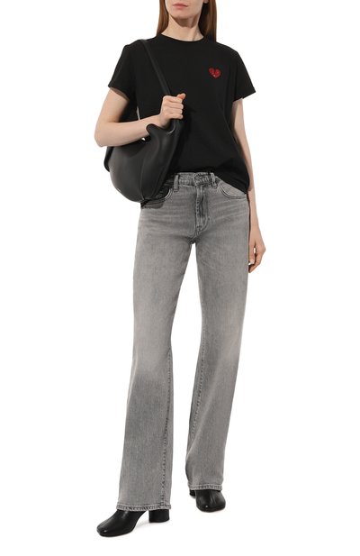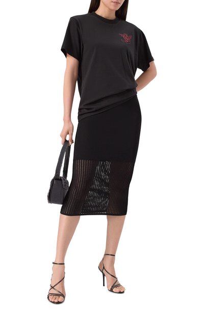 Футболку Emason свободного кроя выполнили из хлопкового джерси. Спереди модель с цельнокроеными рукавами и круглой горловиной в рубчик декорировали россыпью граненых стразов.